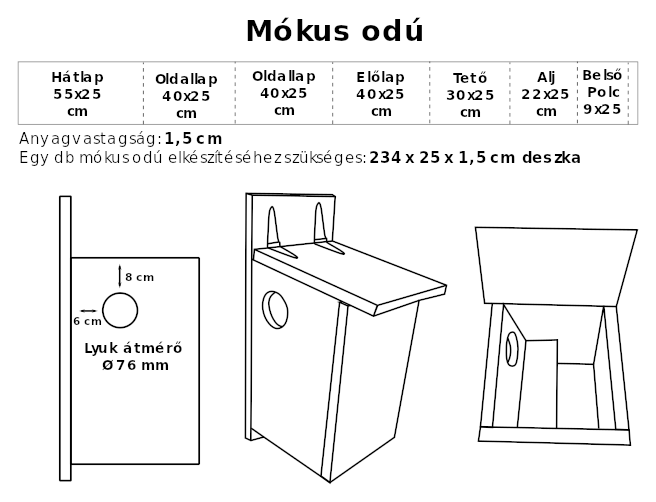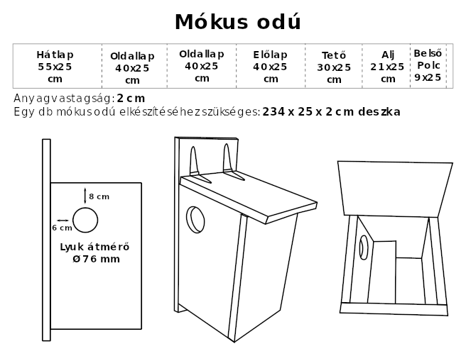 Tervrajz időtálló mókus odú készítéséhez 25 cm széles és 1,5 cm/ 2 cm/ 2,5 cm vastag deszkából.